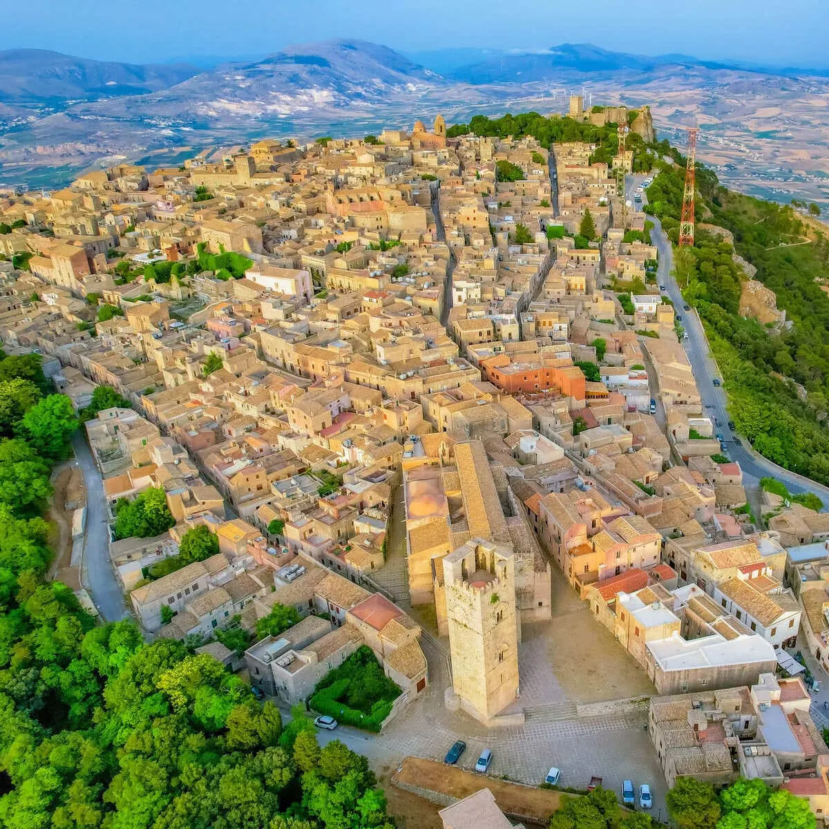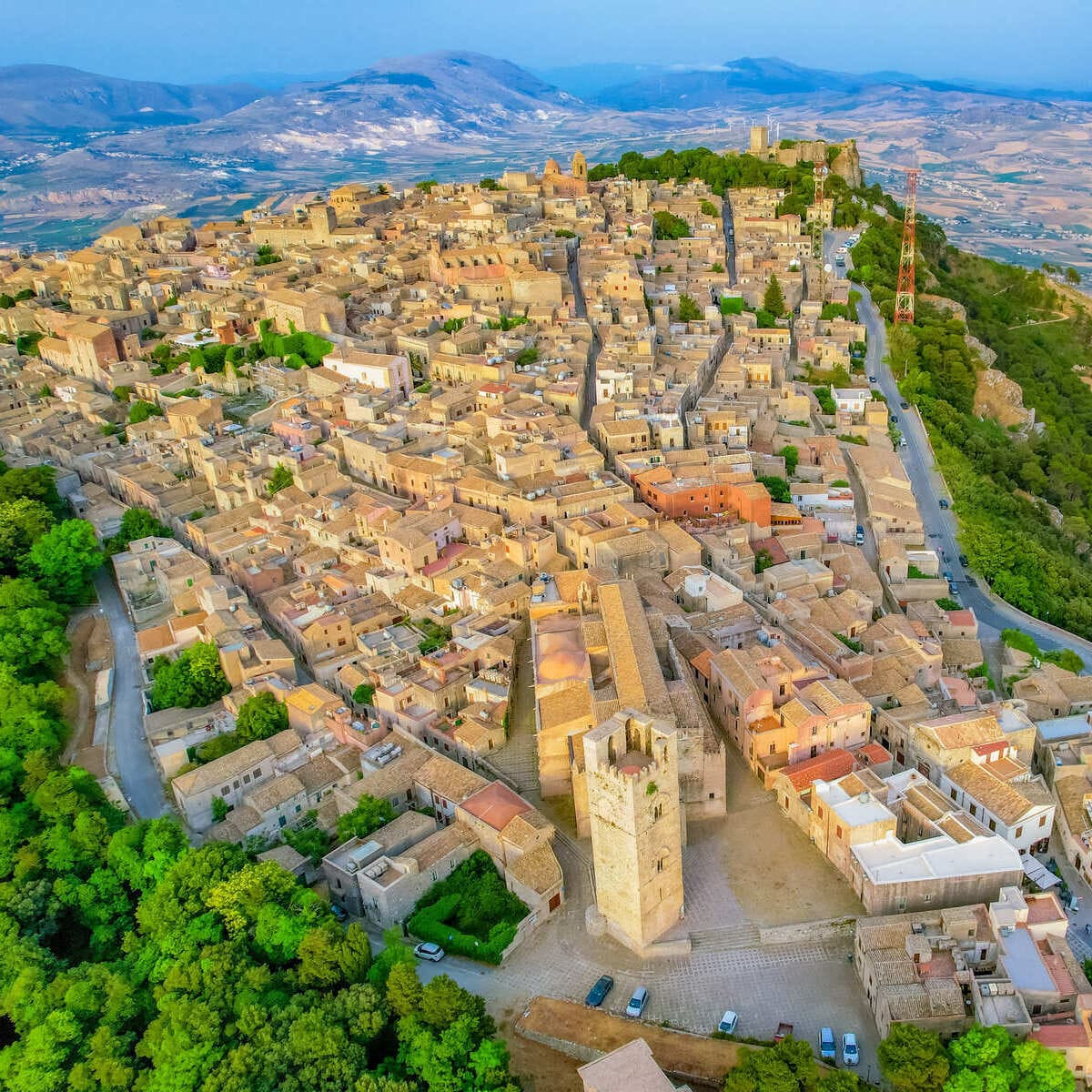 Considered the best-preserved medieval town in Sicily, Erice is perched on a prominent mountain overlooking the island’s lush countryside, and the shimmery Mediterranean beyond, at 2,500 feet above sea level.