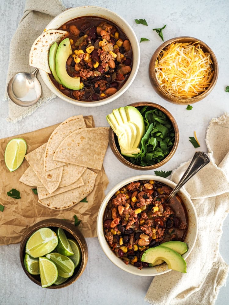 Serve with toppings like shredded cheddar cheese, sliced avocados, and lime wedges.