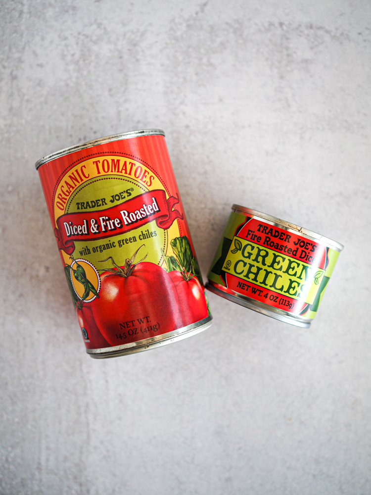 - canned fire-roasted tomatoes with green chilis (you could also use two cans of Rotel)